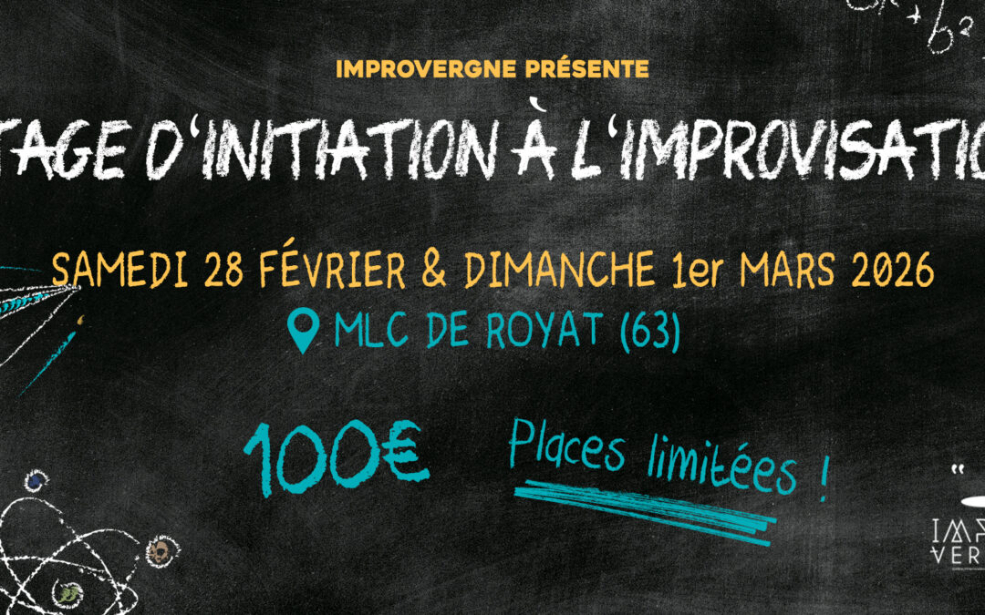 Chaque année, Improvergne vous propose un weekend d’initiation à la pratique du théâtre d’improvisation. Ce stage est encadré par un comédien professionnel, Cédric Lacrouts. Le stage est ouvert à tous les débutants.